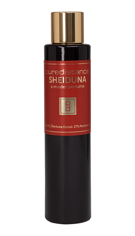 SHEIDUNA is a rich and intense perfume inspired by the panoramic view and atmosphere of golden sand dunes in the desert at sunset—soft, feminine curves that shift from deep gold to warm orange-red—and embodies a promise of sensual comfort and quiet seduction.